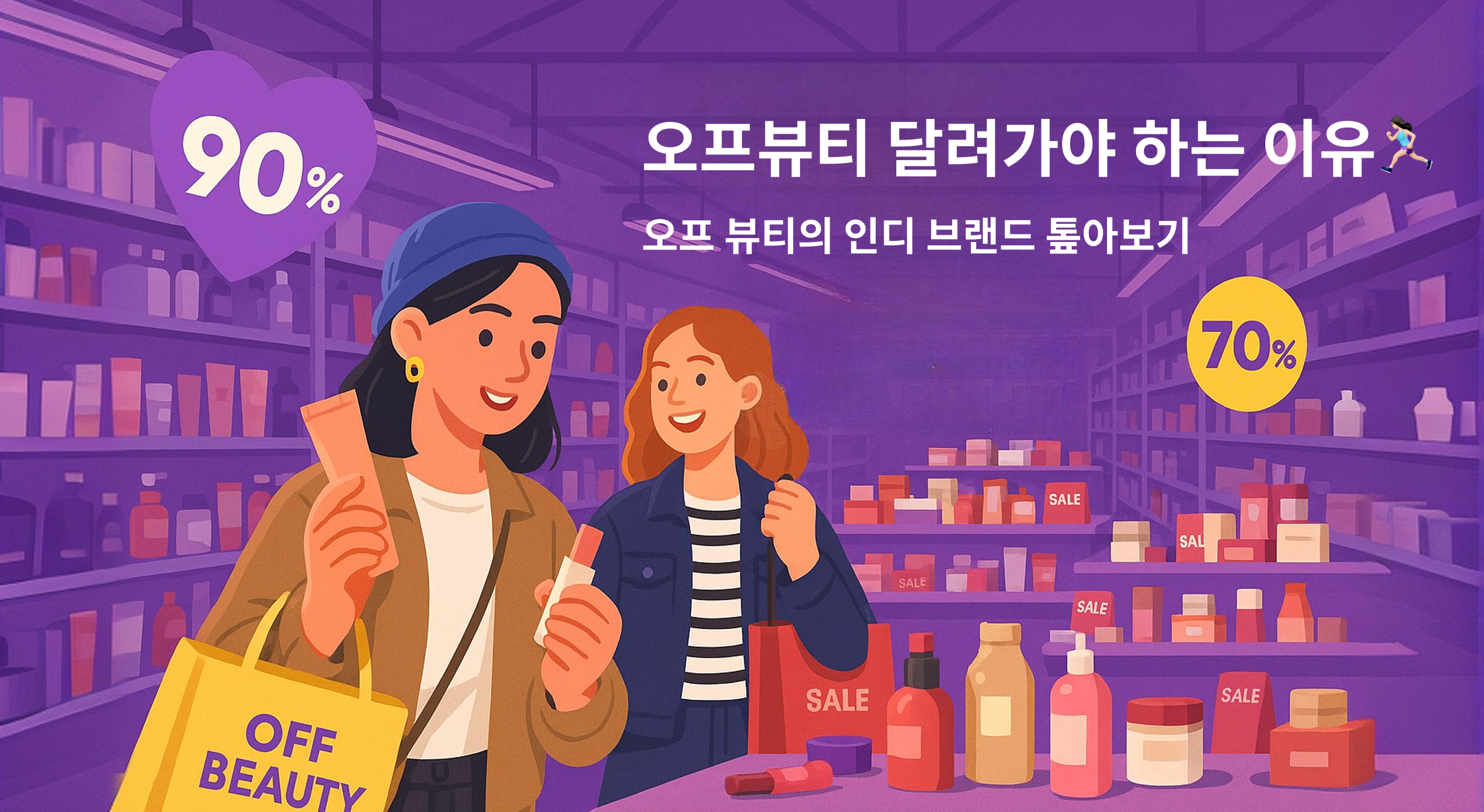 뷰티 유통판을 뒤흔드는 키워드, '오프뷰티(OFF BEAUTY)'! 이곳이 '가성비템 성지'로 입소문 난 거, 다들 아시죠?😉 오프뷰티는 국내 최초로 '뷰티 아울렛'이라는 개념을 제시하며 등장했어요. 광장시장에 첫 매장을 오픈하자마자 가성비와 감성을 잡은 큐레이션으로 내국인은 물론, 외국인 관광객까지 공략하며 무섭게 지점을 늘리는 중이에요.
