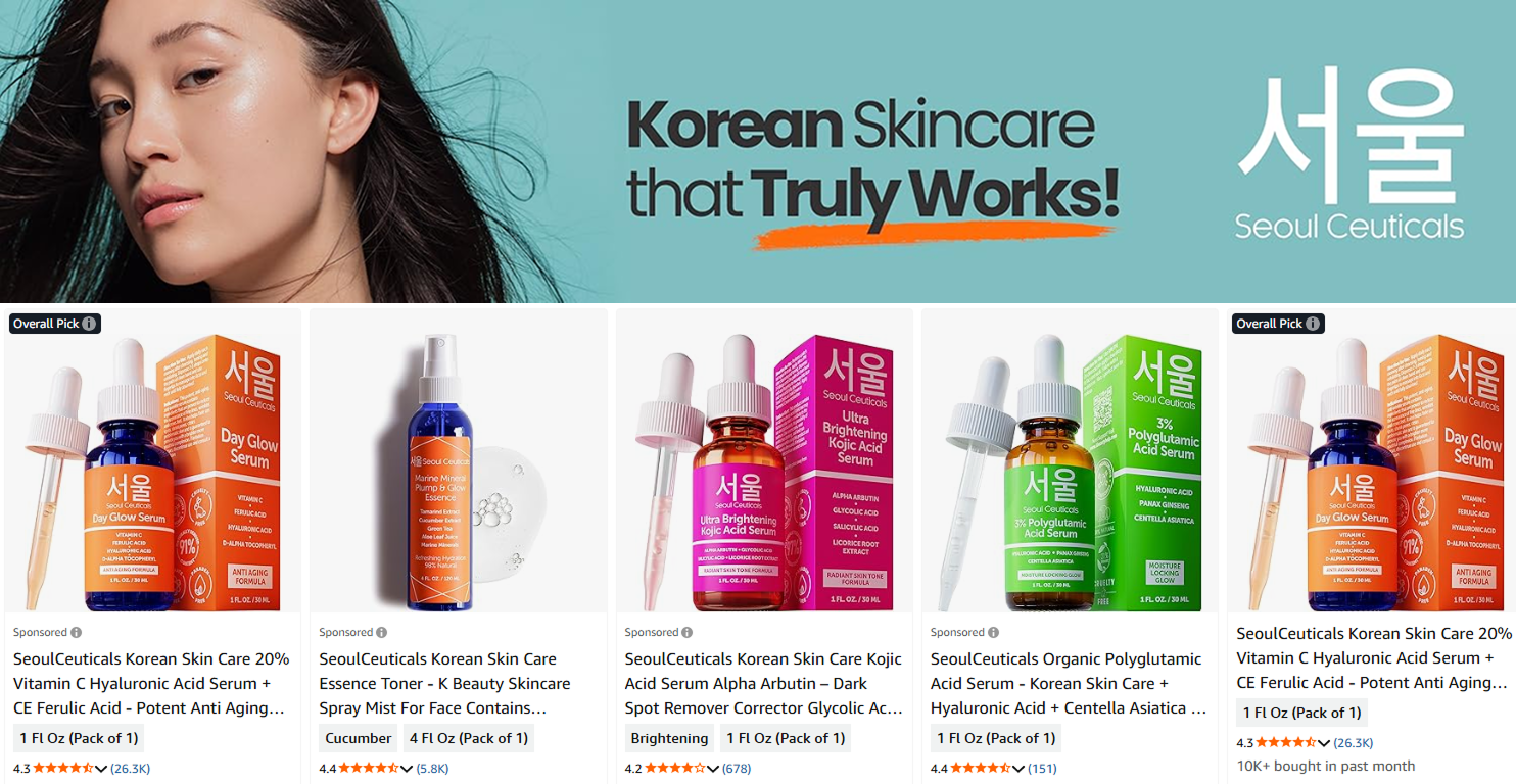 이렇게 해외에서 K-뷰티의 인기가 높아질수록, 짝퉁 K-뷰티도 생겨나고 있어요. 단순히 패키지를 똑같이 만든 게 아닌, 교묘히 한국 제품인 척 K-뷰티 이미지를 강조하며 K-뷰티처럼 브랜딩하는 것이 특징이에요.