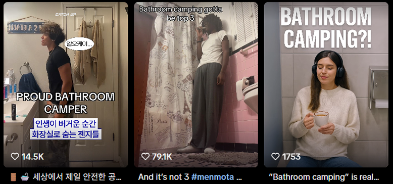 틱톡 해시태그 '#bathroomcamping' 검색 결과