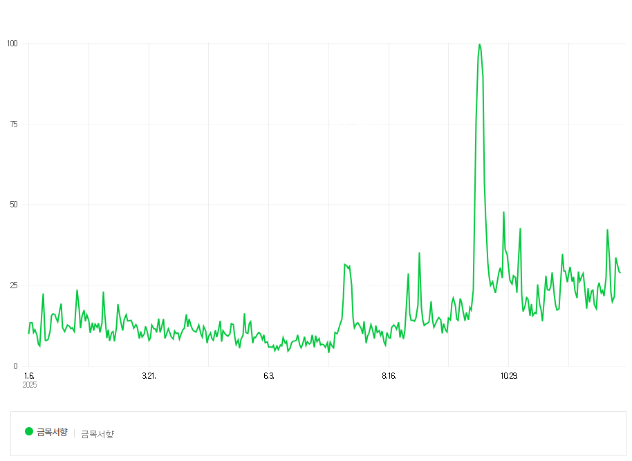 제철 향인 만큼 가을인 2025년 10월에 '금목서향'의 검색량이 여름에 비해 20배 오른 것을 볼 수 있었어요. (네이버 데이터랩 기준)