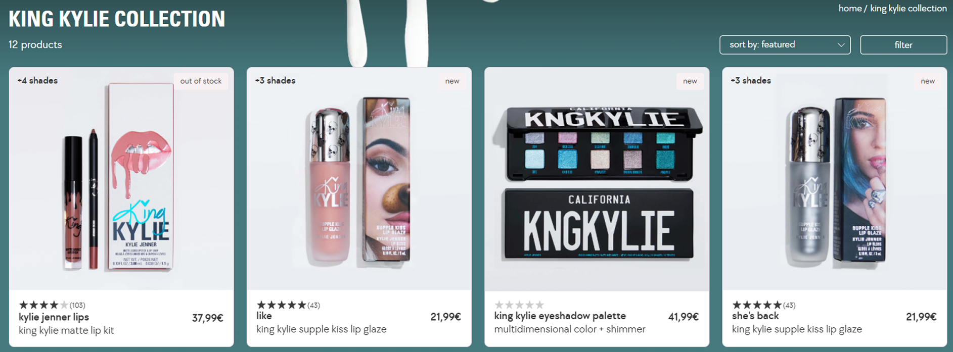 카일리 코스메틱스의 마케팅도 인상적인데요, 힙한 무드의 셀피 구조물로 팝업을 홍보하고, 브랜드의 공식 게정은 힙한 셀피 구조물로 팝업을 홍보하고 옛날 그 유행곡을 카일리가 참여해 리메이크한 음원까지 냈어요. 브랜드의 공식 계정은 2016년 브랜드 초창기 시절이 떠올려지는 ‘킹 카일리 에라’로 완전히 돌아간 듯 연출해 소비자의 눈길을 끌었어요. 론칭 10주년을 맞아 '킹 카일리 컬렉션' 을 선보이며 독특한 컬러의 아이 메이크업과 글로시 립 텍스처 제품을 선보였고, 무려 10년 전 품절 대란이던 립키트도 재출시했어요.