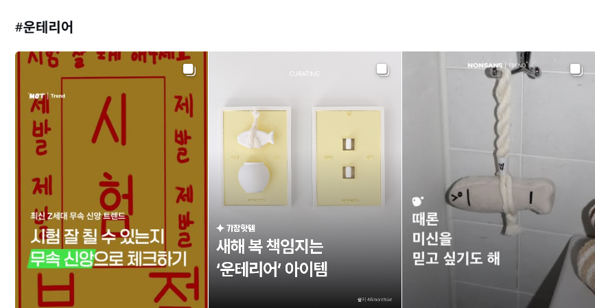 sns에서는 풍수지리를 고려한 인테리어를 '운테리어'라고 부르며 큰 관심을 받고 있어요. 동남쪽에 붉은 물건을 두거나, 현관에 거울을 없앤다거나 하는 것 말이죠. 대표적인 인테리어 용품 판매 플랫폼 인 오늘의집이나 29센치에서도 풍수지리 관련 컨텐츠를 업로드하기도 했어요. 오늘의집 내 '#풍수지리 인테리어' 해시태그 게시물은 2,000개 이상 올라올 정도로 유저들 사이에서 인기가 많고요.