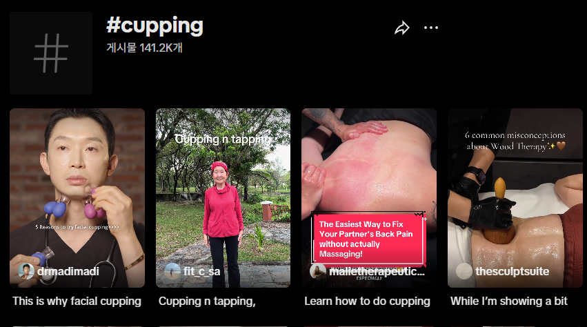 출처: 틱톡 / '#cupping' 태그 검색 화면