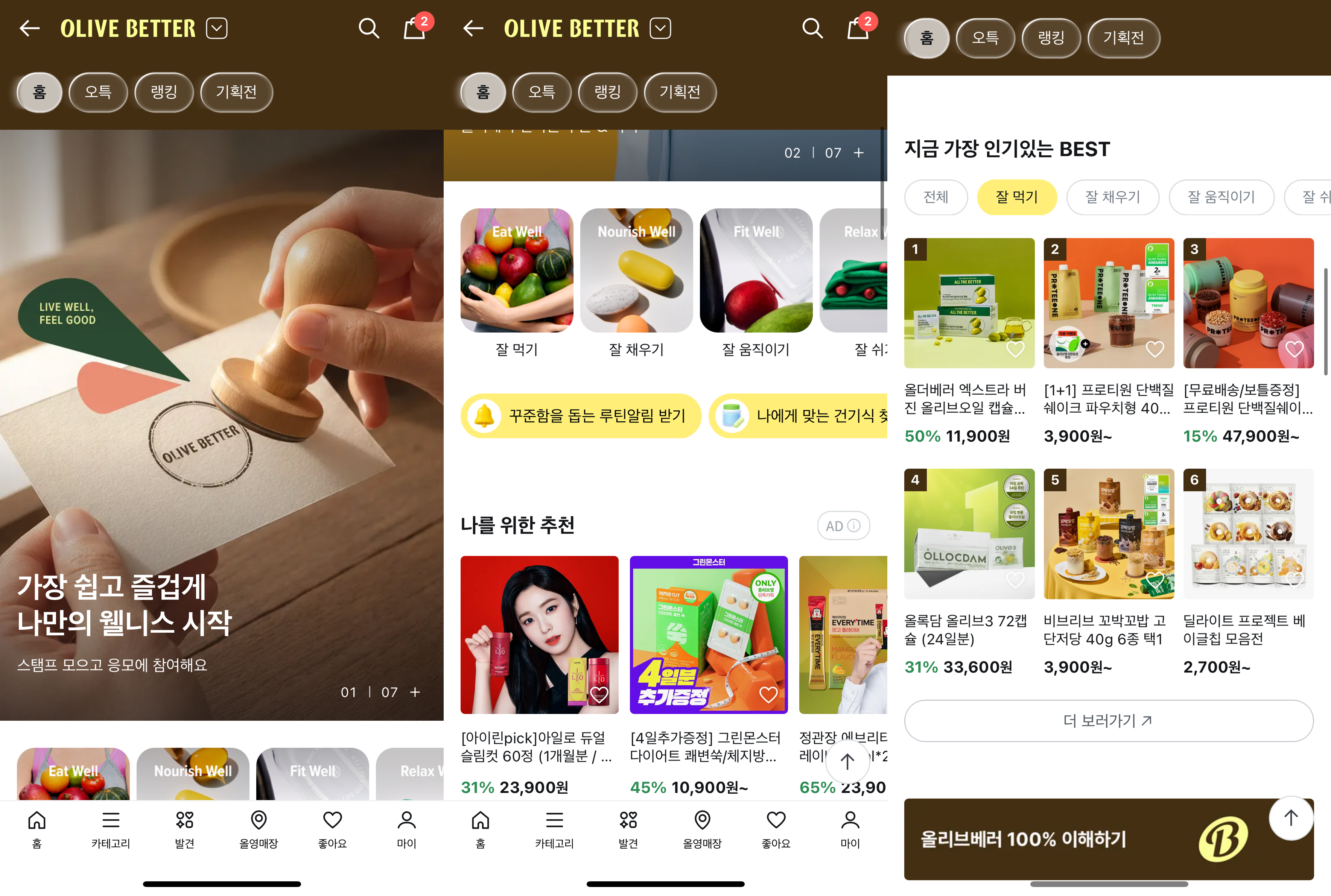 웰니스 시장이 성장하고는 있지만, 국내 소비자들이 이를 종합적으로 경험할 수 있는 오프라인 공간이 부족했는데요, 이번에 올리브영 웰니스 플랫폼 '올리브베러'가 새로 오픈하면서 기존 헬스케어 관련 제품들 뿐만 아니라 웰니스 관련 아이템도 한자리에서 만나볼 수 있게 됐어요. 올리브베러에서는 6가지 웰니스 가이드를 제시하고 있어요. 그 중 ‘잘 쉬기(Relax Well)’와 ‘잘 케어하기(Care Well)’ 테마에 맞춰 안정을 위한 아로마오일은 물론 리듬감 있는 하우스 음악을 감상할 수 있는 헤드셋도 비치되어 있는 등 올리브베러에서는 다양한 분야에서의 웰니스 제품을 제공하고 있어요. 올리브베러는 광화문에 1호점을 오픈했는데, 건강에 관심이 많은 직장인을 타겟으로 인근에 요가나 필라테스 시설이 많고 마라톤 등의 주요 출발 지점으로 활용되는 등 웰니스에 대한 수요가 큰 지역에 오픈한 것으로 보여요.